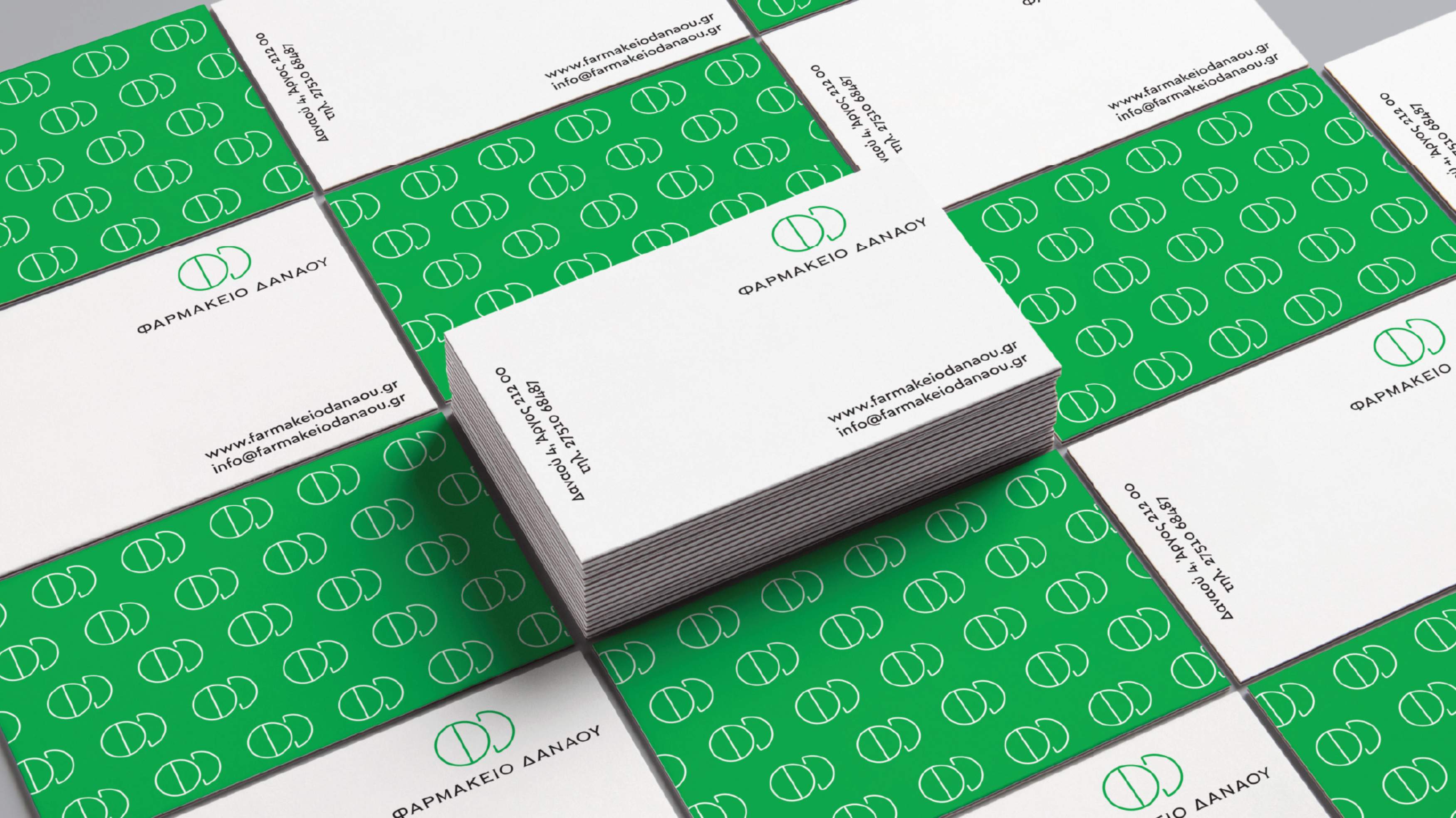 Για το Φαρμακείο Δαναού, αναλάβαμε τον σχεδιασμό του λογοτύπου και της εταιρικής επικοινωνίας, δημιουργώντας μια αναγνωρίσιμη και σύγχρονη οπτική ταυτότητα. Το λογότυπο απεικονίζει ένα ολόκληρο και ένα μισό χάπι, τοποθετημένα δίπλα-δίπλα. Με αυτόν τον τρόπο σχηματίζεται διακριτικά το αρχίγραμμα του φαρμακείου (ΦΔ), ενώ ταυτόχρονα αναδεικνύεται η δραστηριότητα του χώρου.