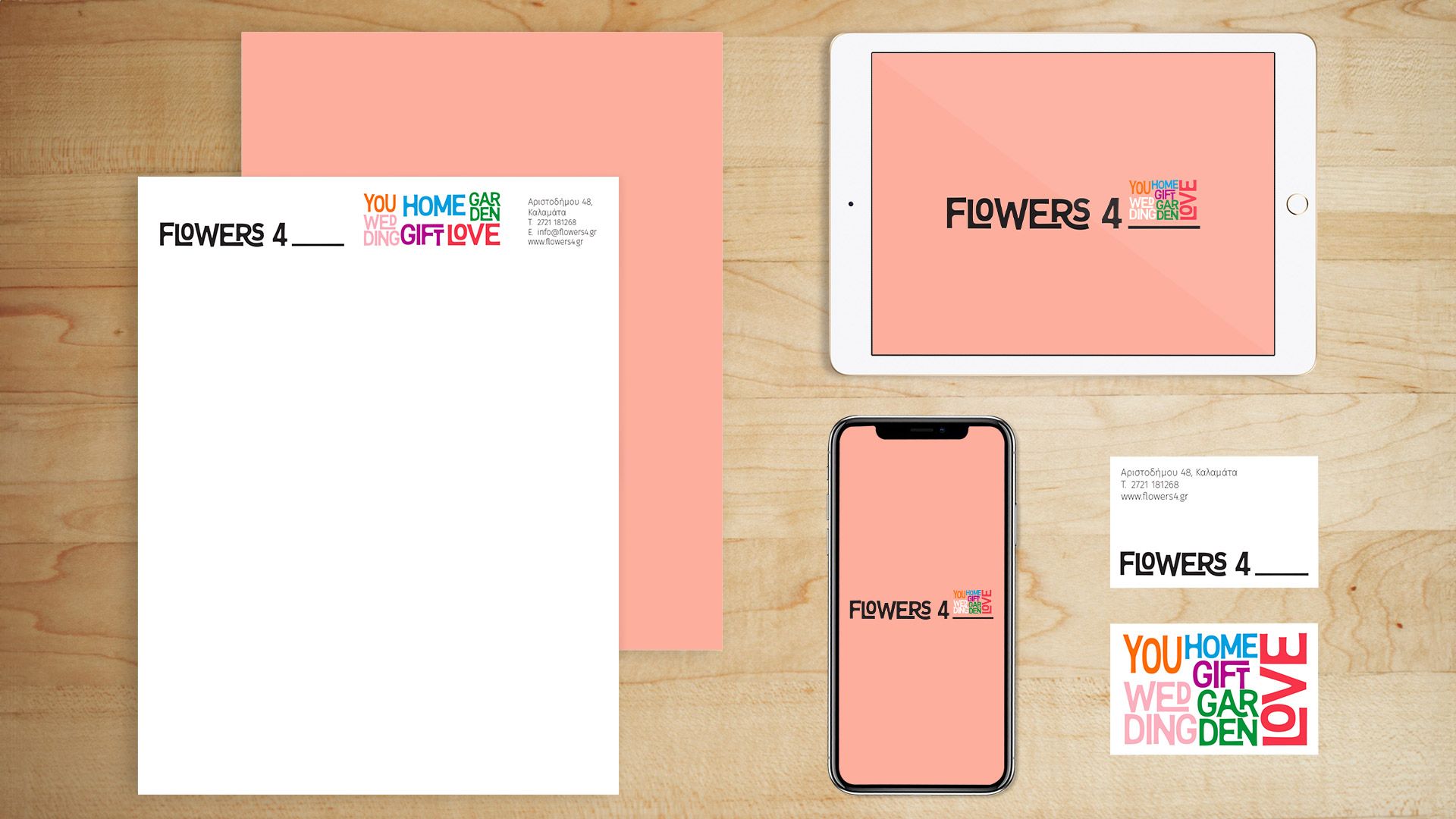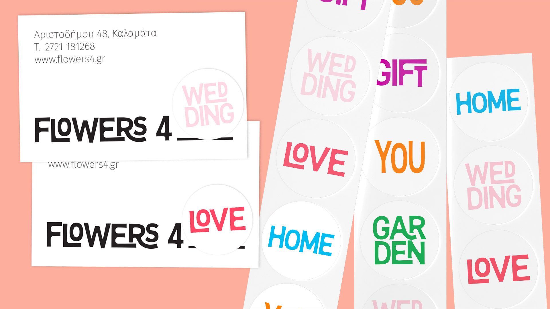Για την εταιρεία Flowers 4_, με εξειδίκευση στα λουλούδια, αναλάβαμε τον σχεδιασμό του λογοτύπου και της οπτικής ταυτότητας, αντικατοπτρίζοντας την ευελιξία και τη δημιουργικότητα της επιχείρησης. Η εταιρεία καλύπτει ένα ευρύ φάσμα υπηρεσιών: από ανθοδέσμες και στολισμό εκδηλώσεων μέχρι τη δημιουργία κήπων, και κάθε υπηρεσία απαιτεί διαφορετική προσέγγιση στην επικοινωνία.